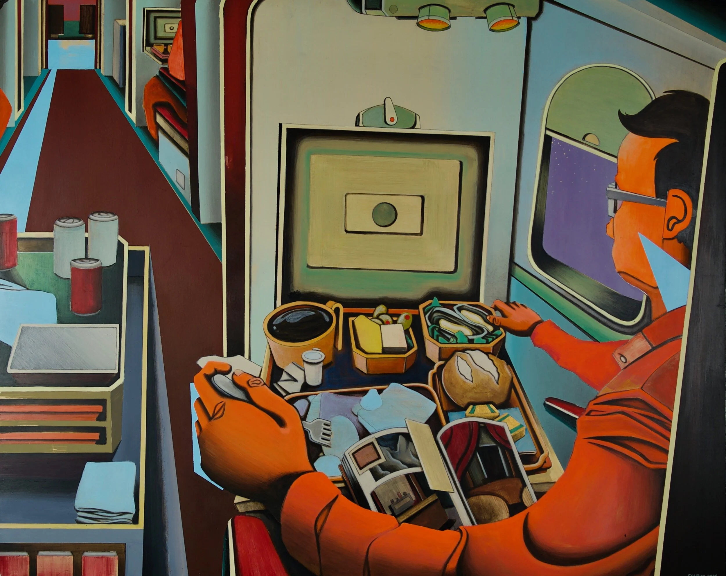Last Call gouache and acrylic paint on wood panel, 36” X 46” 2020