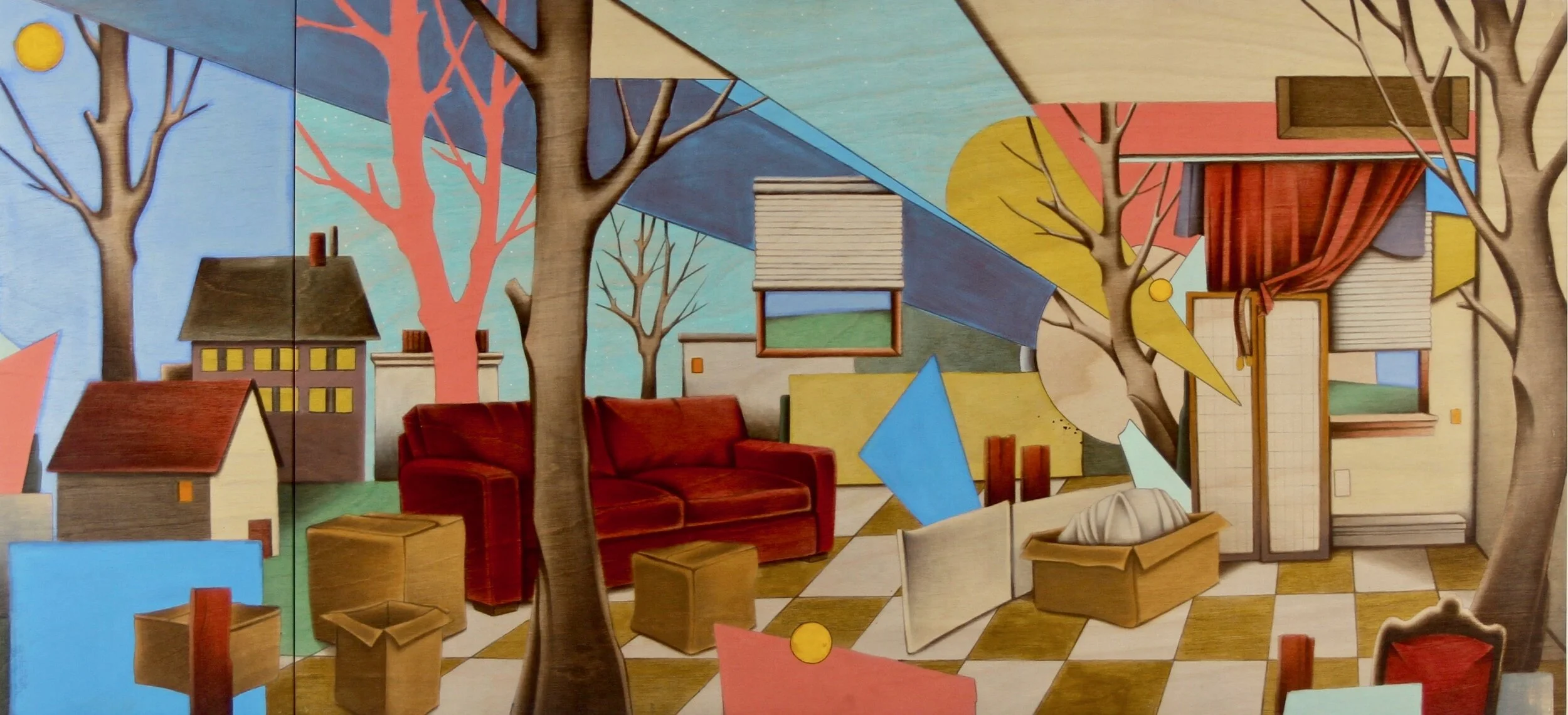 Shelter gouache and acrylic paint on wood panel, 16" X 20", 2017